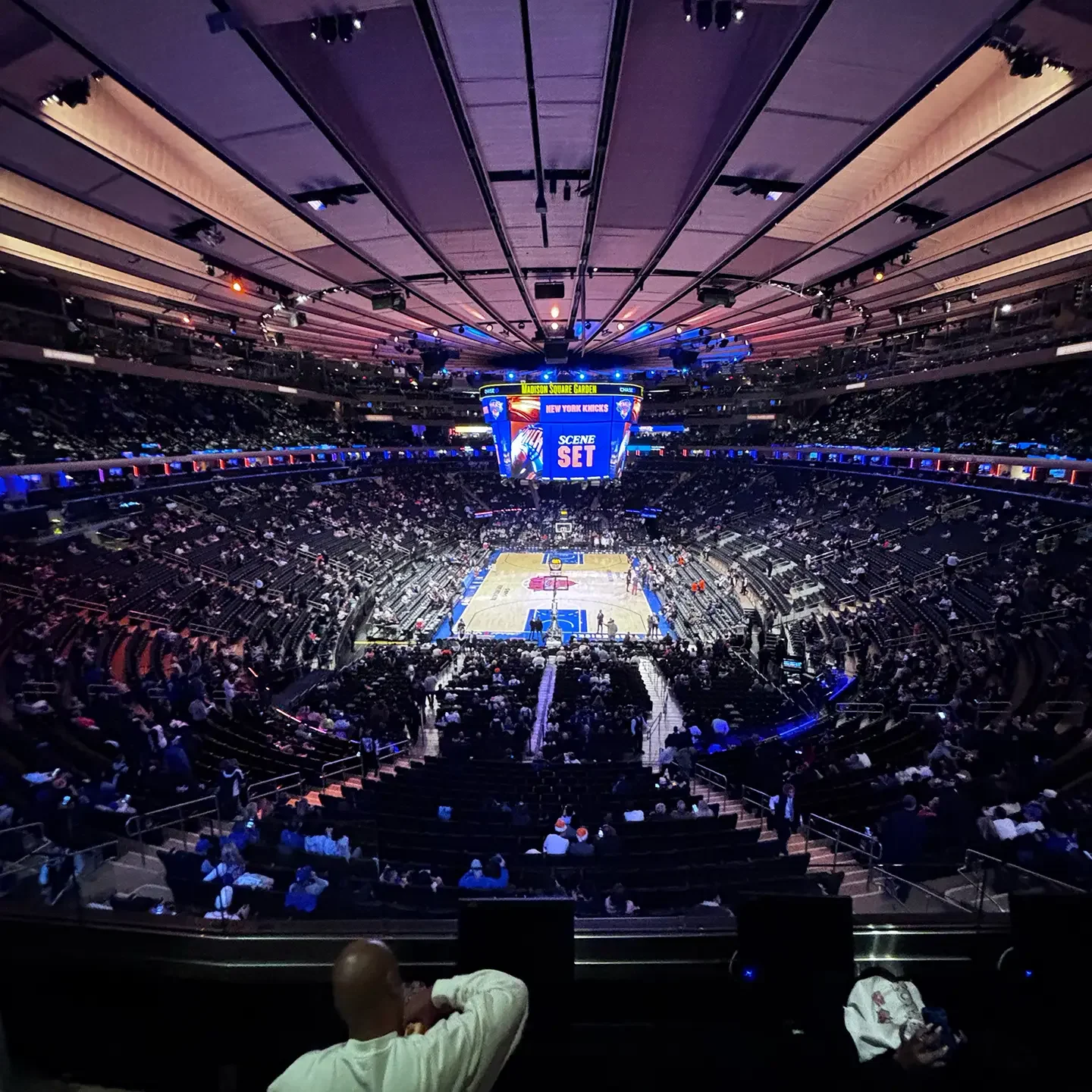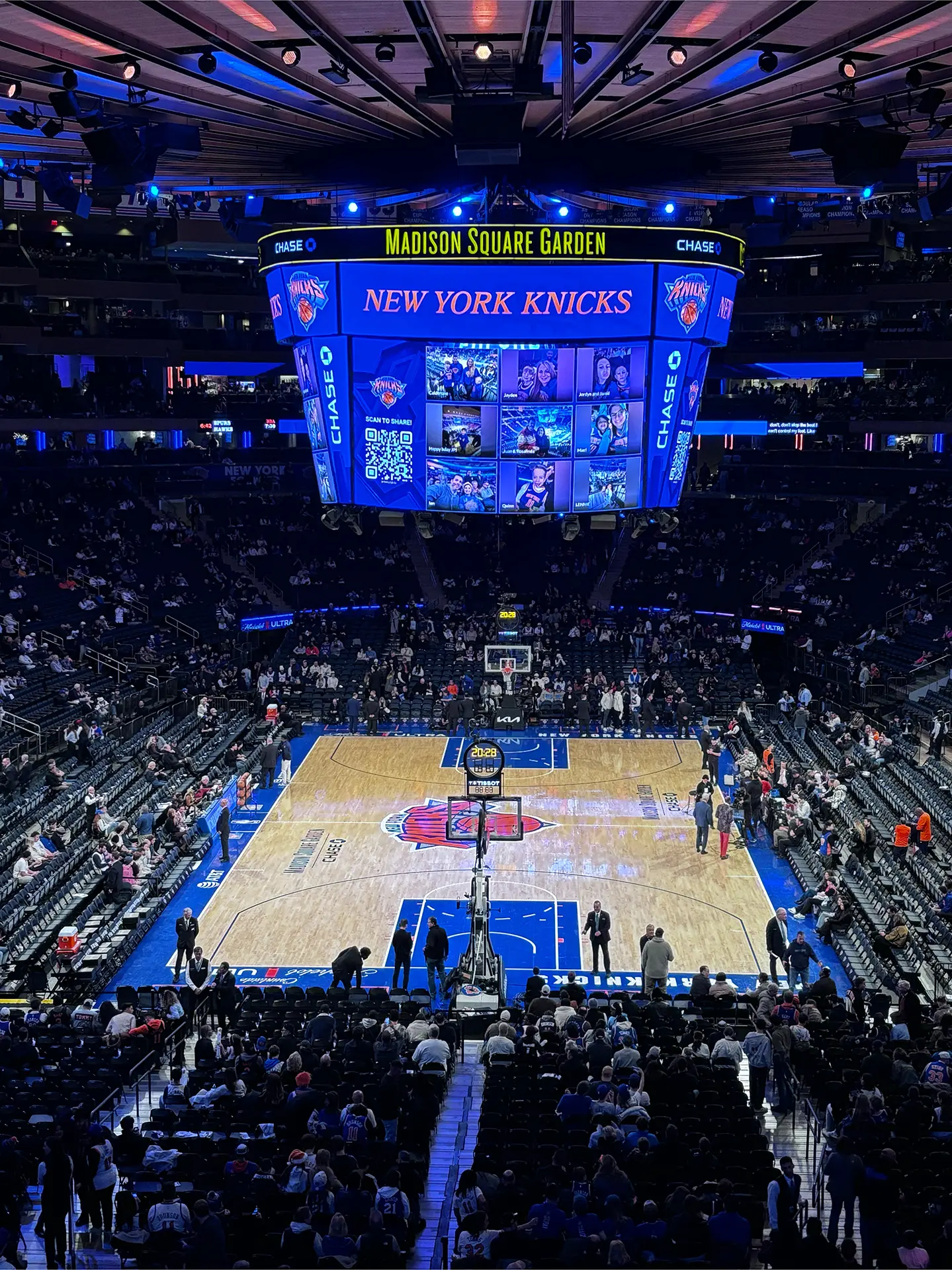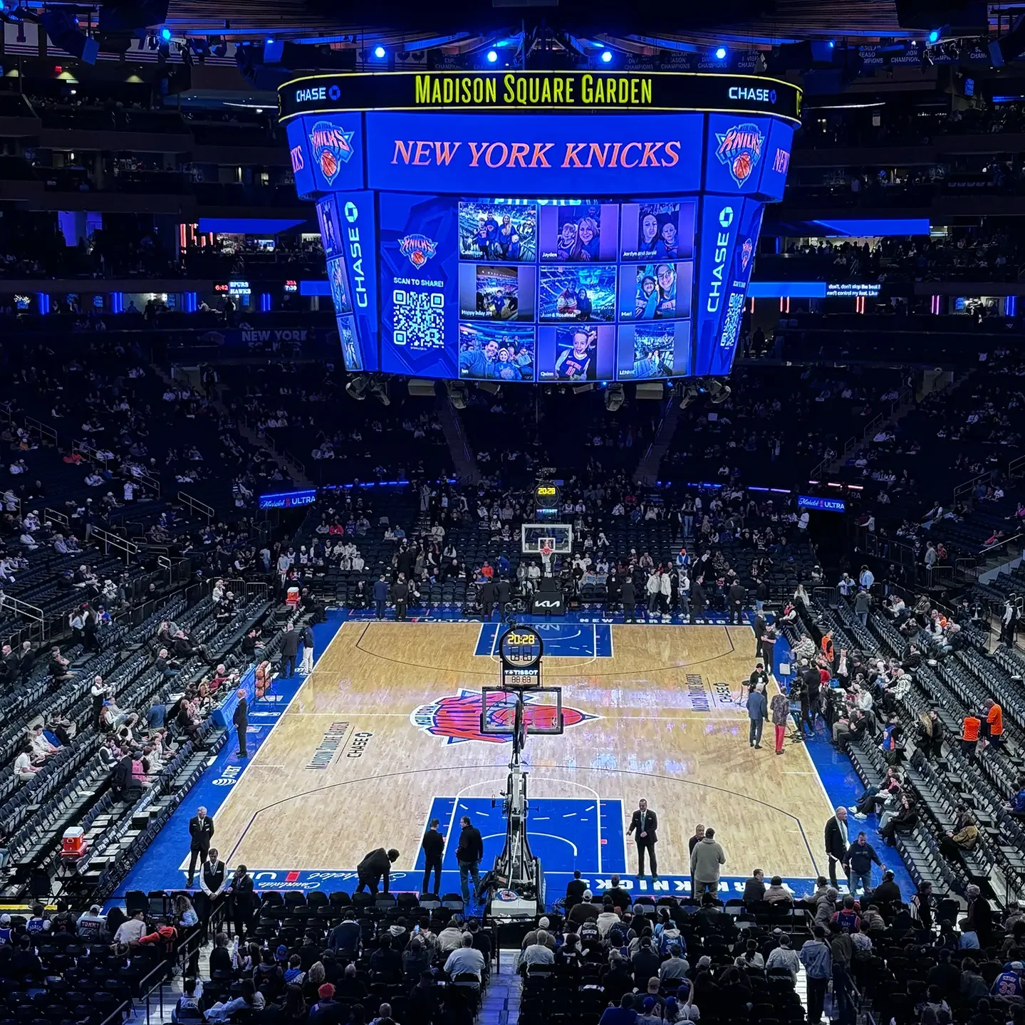 Déjà quatre jours que nous sommes ici et aujourd’hui, c’est jour de match !! Les New York KNICKS rencontrent les Philadelphia 76ers et fêtent leur récent titre devant leur public. Nous avons la chance immense d’assister à l’échauffement des joueurs. Le « PRE GAME WARM-UP » ! Et de découvrir la mythique ARENA : LE MADISON SQUARE GARDEN !