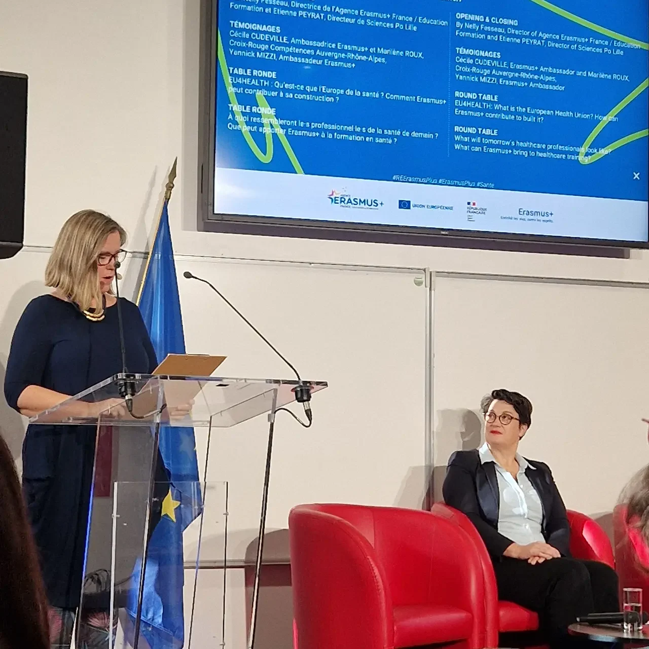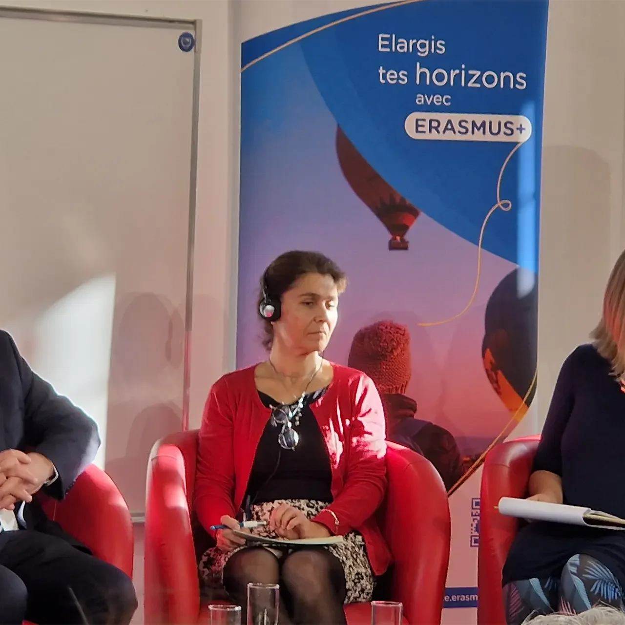 Nelly Fesseau, Directrice de l’Agence Erasmus+ France, a introduit l’événement en rappelant l’importance du programme Erasmus+ pour la coopération et la formation en Europe.