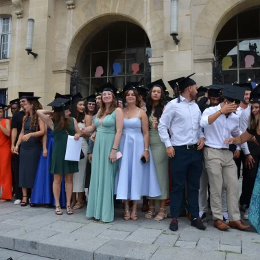 - Moments clés : distribution des diplômes, discours, photo de promotion, tradition du lancer de chapeaux