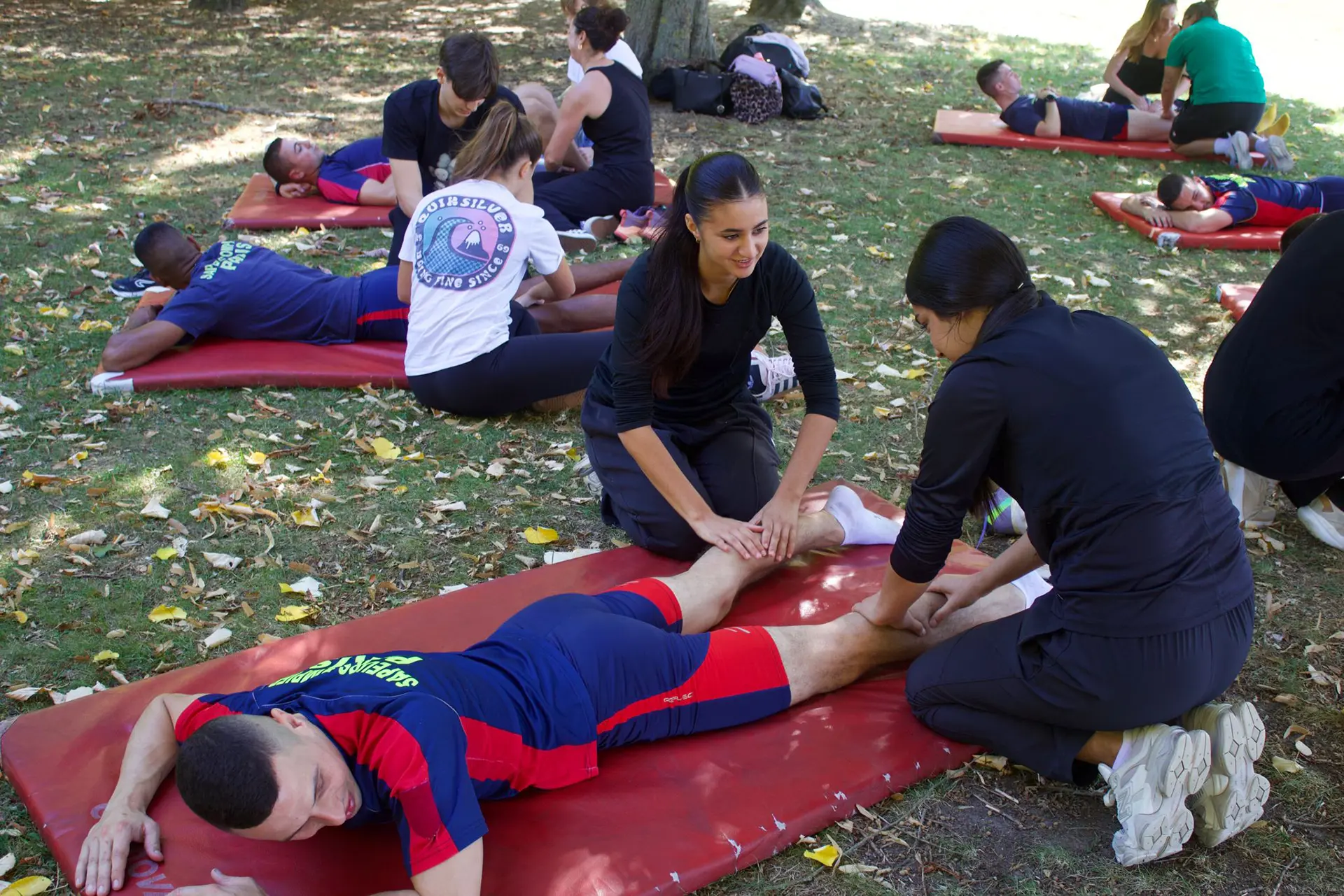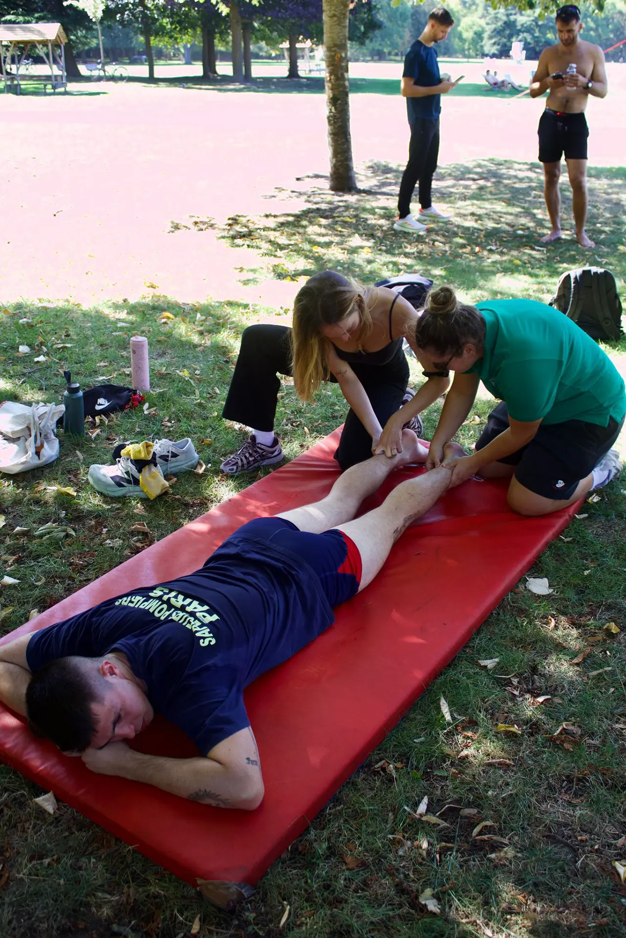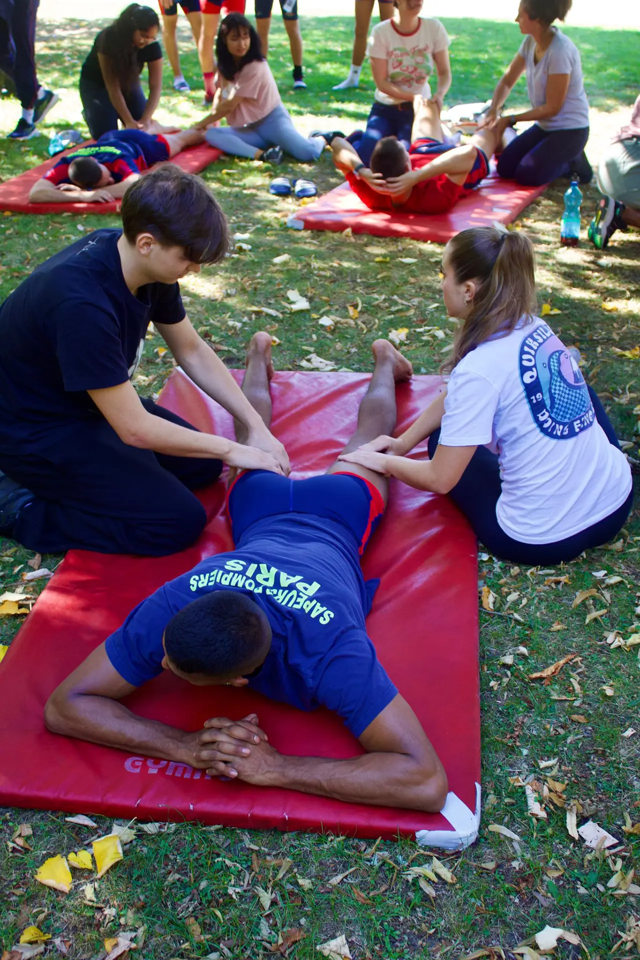 Le 18 septembre 2025, un groupe d’étudiants a eu l’opportunité d’accompagner un challenge sportif exceptionnel organisé pour 25 sapeurs-pompiers de Paris. Ces derniers devaient parcourir 100 km en 24 heures, en effectuant une boucle de 4,2 km toutes les heures. Les étudiants, organisés par binômes, ont assuré des massages de récupération ciblés entre les boucles de course, adaptés aux douleurs et besoins de chaque participant.